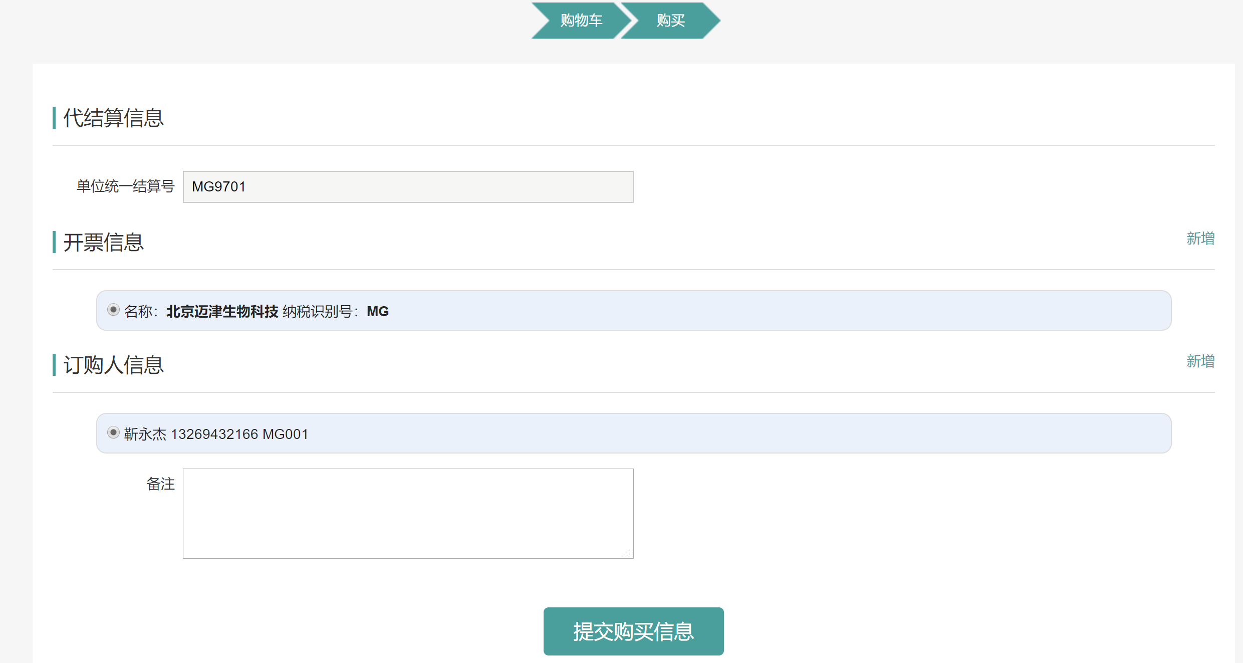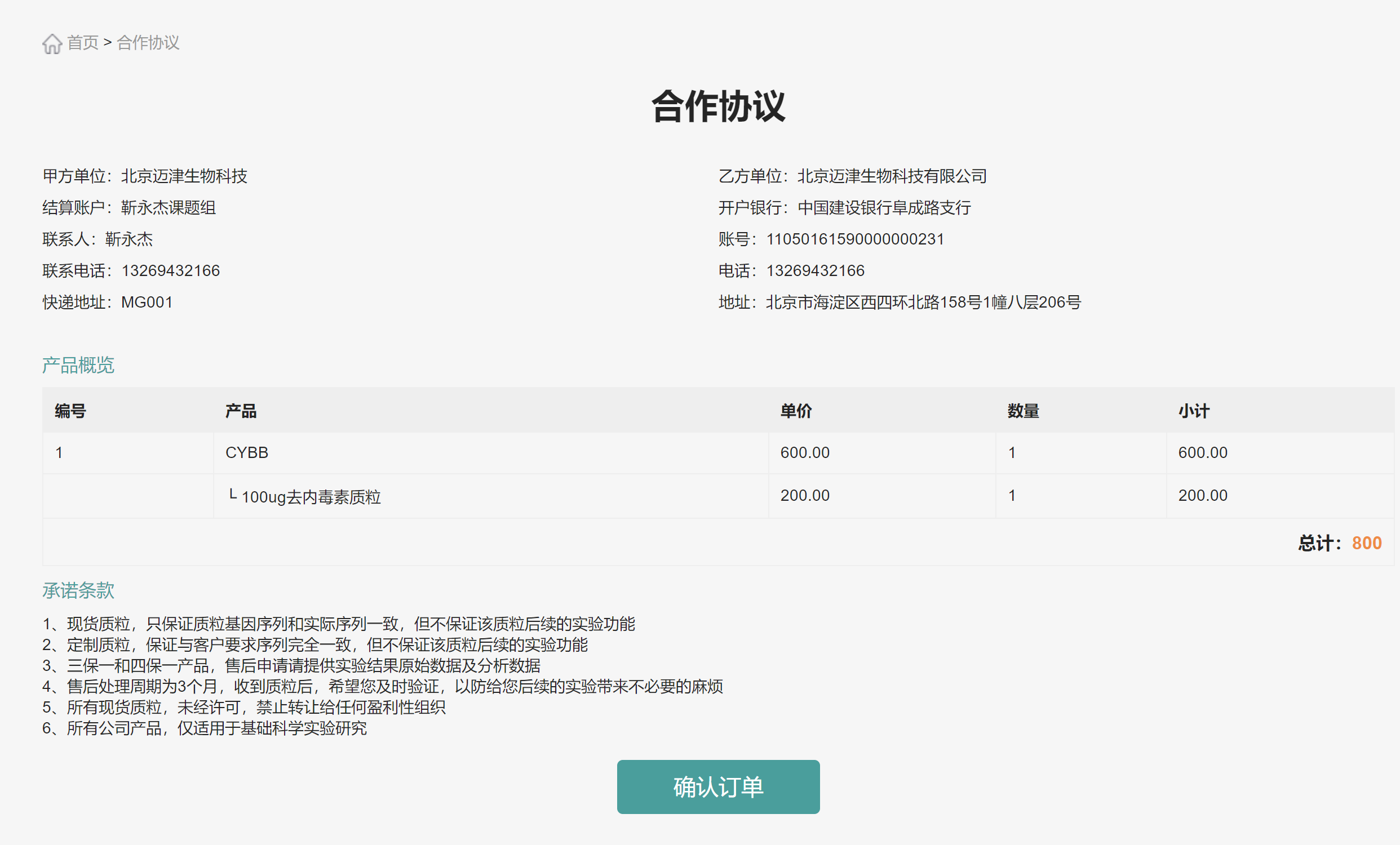 确认下单信息是否正确,无误后提交订单