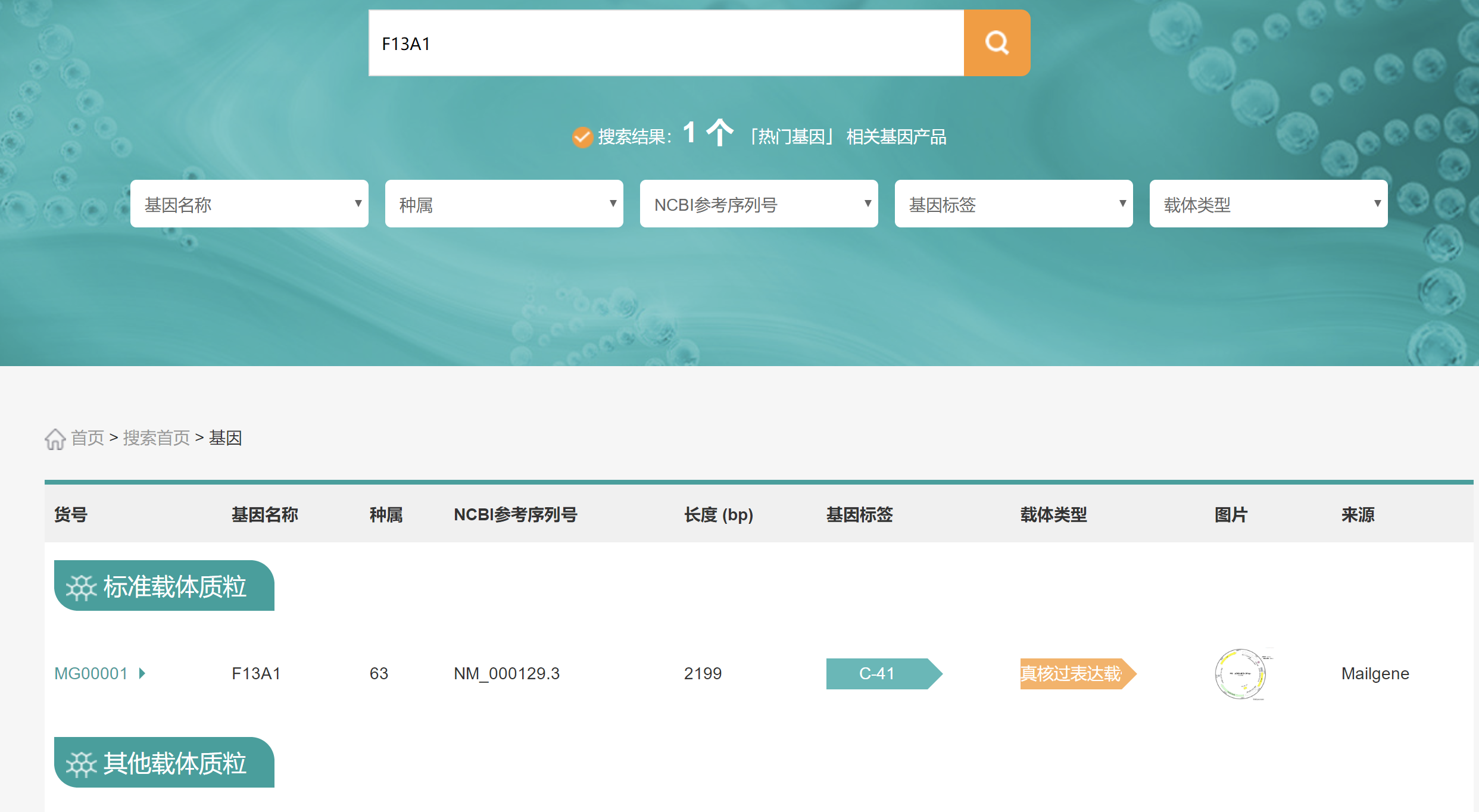 登录账户,并搜索您想要的基因或者载体,输入货号或者名称查询,基因亦可输入NM/NR编号查询