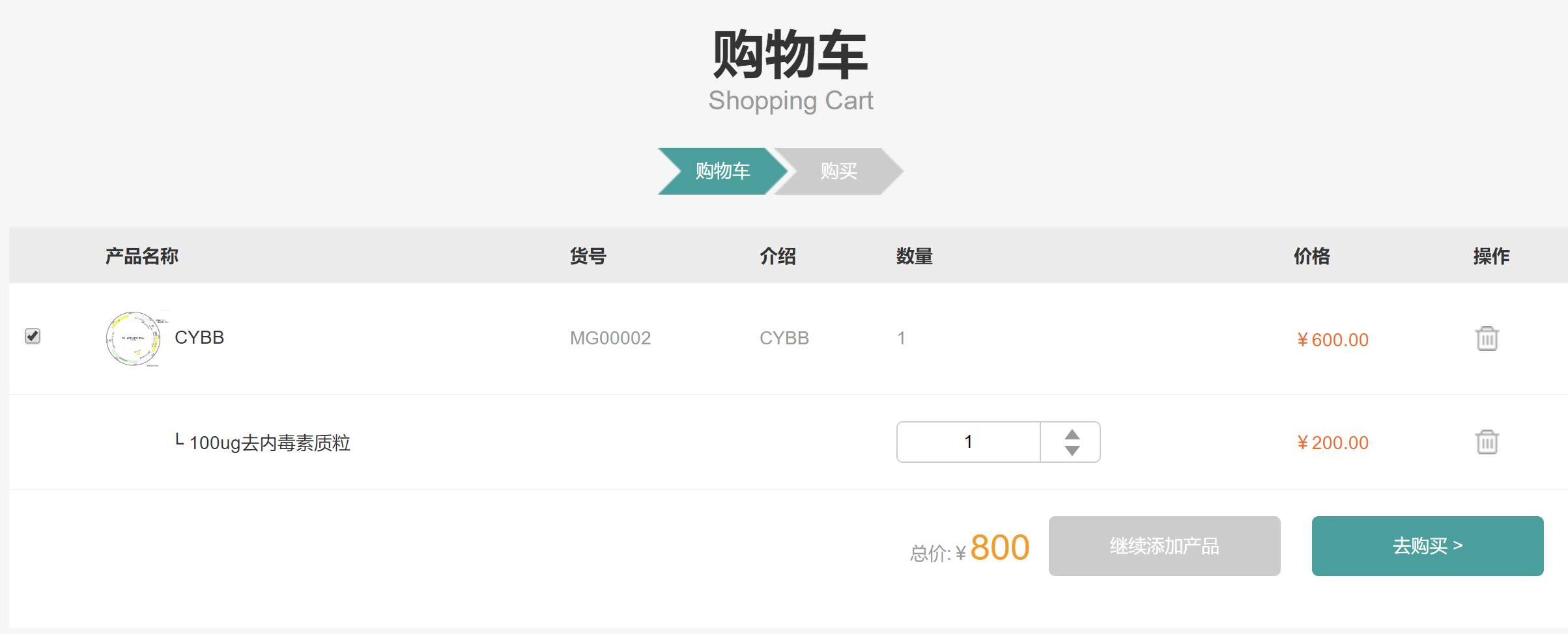 选择合适的质粒规格加入购物车