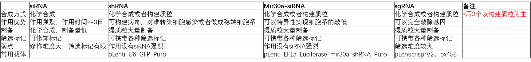 几种敲低方法优势对比